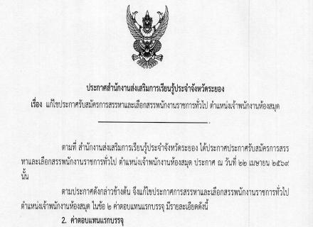 ประกาศแก้ไขประกาศรับสมัครการสรรหาและเลือกสรรพนักงานราชการทั่วไป ตำแหน่ง เจ้าพนักงานห้องสมุด