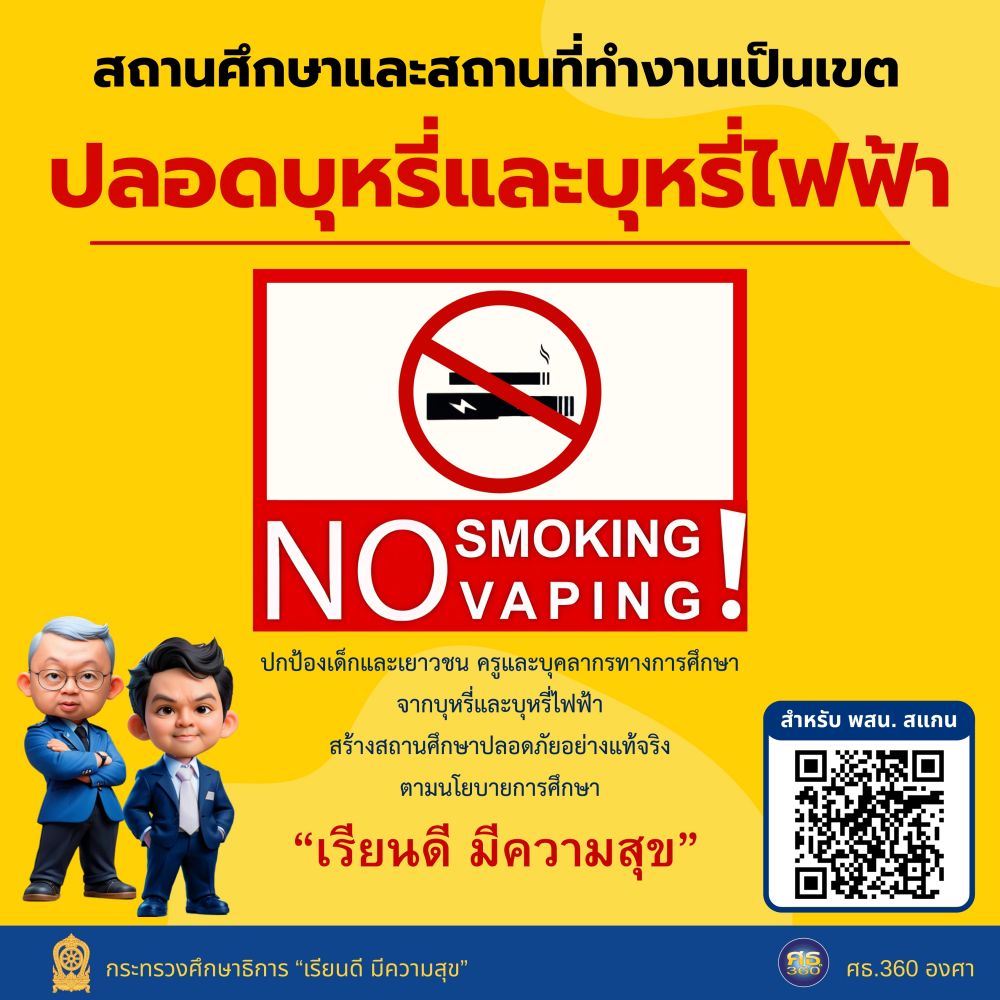 สถานศึกษาและสถานที่ทำงานเป็นเขต ปลอดบุหรี่และบุหรี่ไฟฟ้า