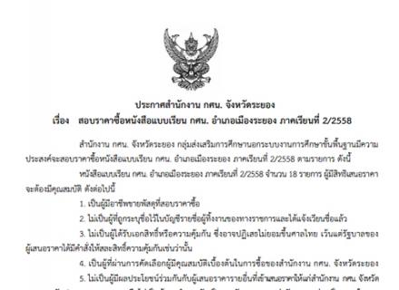 ประกาศสอบราคาซื้อหนังสือแบบเรียน กศน. อำเภอเมืองระยอง ภาคเรียนที่ 1/2559