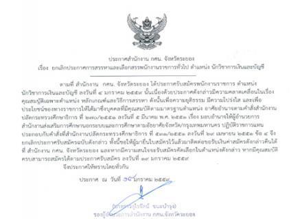 ประกาศยกเลิกการสรรหาและเลือกสรรพนักงานราชการทั่วไป ตำแหน่ง นักวิชาการเงินและบัญชี
