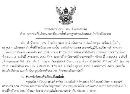 ประกาศสำนักงาน กศน. จังหวัดระยอง สอบคัดเลือกครูศูนย์การเรียนชุมชน