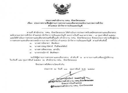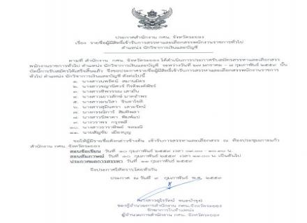 ประกาศรายชื่อผู้ผ่านการสรรหาและเลือกสรรพนักงานราชการทั่วไปื ตำแหน่ง นักวิชาการเงินและบัญชี