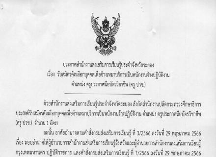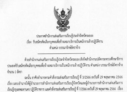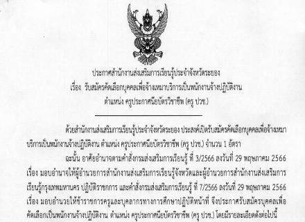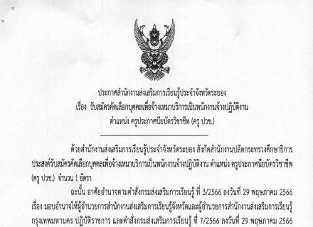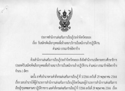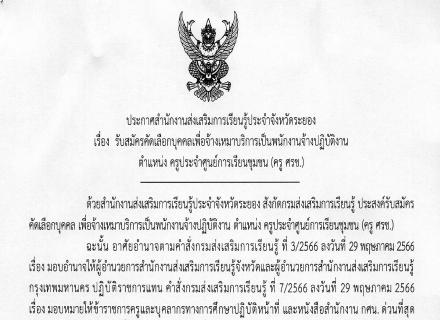 ประกาศรับสมัครคัดเลือกบุคคลเพื่อจ้างเหมาบริการเป็นพนักงานจ้างปฏิบัติงาน ตำแหน่ง ครูประจำศูนย์การเรียนชุมชน (ครู ศรช.)