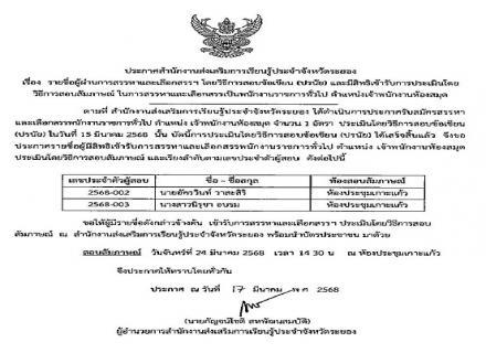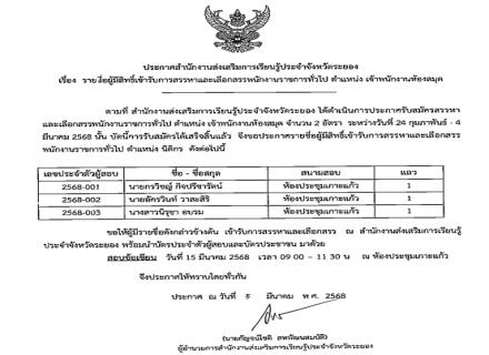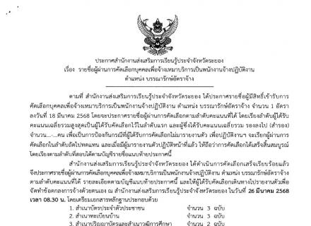 สำนักงาน สกร.ประจำจังหวัดระยอง ประกาศการสรรหาและเลือกสรรพนักงานราชการทั่วไป จำนวน ๒ อัตรา1)ตำแหน่ง นักจัดการงานทั่วไป จำนวน ๑ อัตรา   2) ตำแหน่ง ครู กศน.ตำบล  จำนวน ๑ อัตรา  ระหว่างวันที่ 8-16 มกราคม 2568 สามารถมายื่นเอกสารด้วยตนเองได้ที					 |