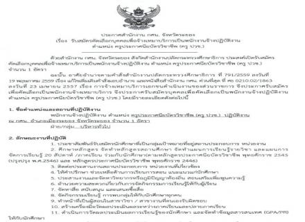 ประกาศรับสมัครคัดเลือกบุคคลเพื่อจ้างเหมาบริการเป็นพนักงานจ้างปฏิบัติงาน ตำแหน่ง ครูประกาศนียบัตรวิชาชีพ (ครู ปวช.)