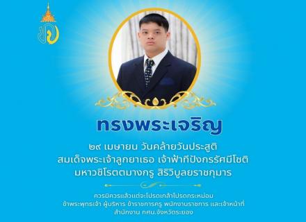 ขอเชิญชวนประชาชนร่วมลงนามถวายพระพร สมเด็จพระเจ้าลูกยาเธอ เจ้าฟ้าทีปังกรรัศมีโชติ มหาวชิโรตตมางกูร สิริวิบูลยราชกุมาร เนื่องในโอกาสวันคล้ายวันประสูติ วันที่ ๒๙ เมษายน ๒๕๖๖ ผ่านระบบออนไลน์ ที่เว็บไซต์หน่วยราชการในพระองค์ https://wellwishes.royaloffice.th ระ